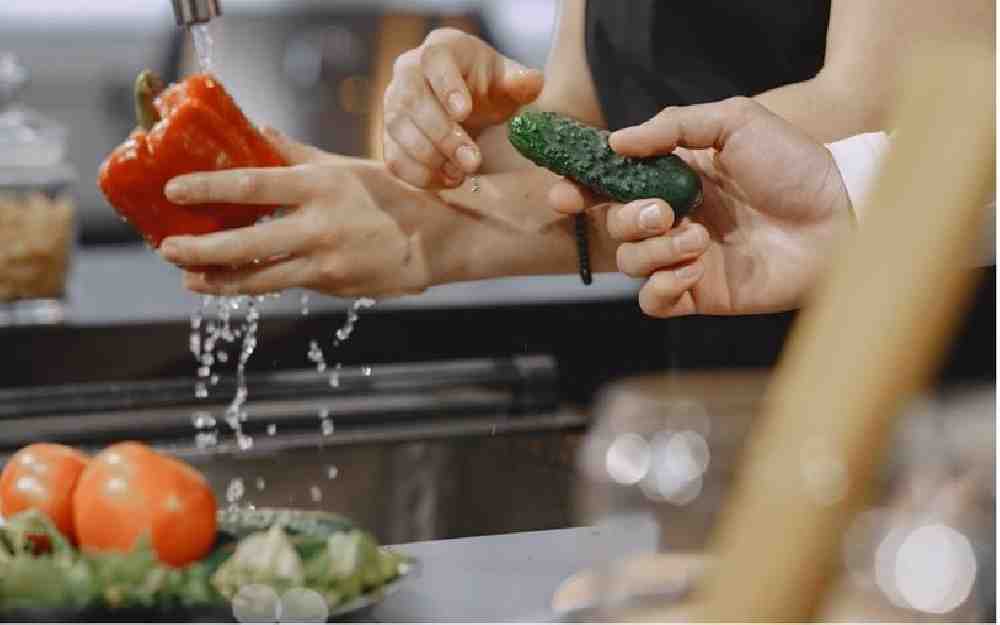 يمكن غسل الطماطم والخيار والفلفل تحت الماء الجاري البارد وفرك سطحها باليدين لإزالة أي مبيدات أو أوساخ متبقية عليها.