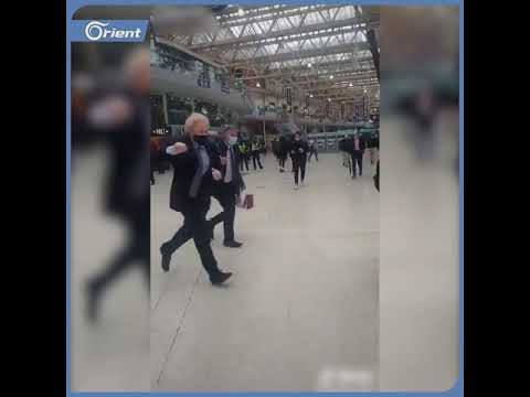رئيس الوزراء البريطاني بوريس جونسون وفريق عمله يضطرون للركض للحاق بالقطار في محطة قطار “واترلو” في لندن.