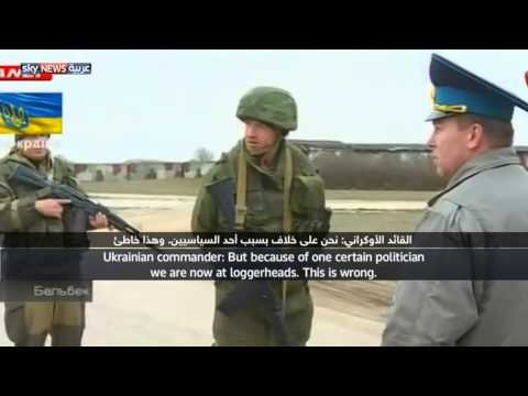 دارت مواجهات كلامية بين جنود أوكرانيين وروس في شبه جزيرة القرم. والتقطت عدسة الكاميرا الحوار الساخن الذي استمر لدقائق دون أن يتم خلاله إطلاق النار.