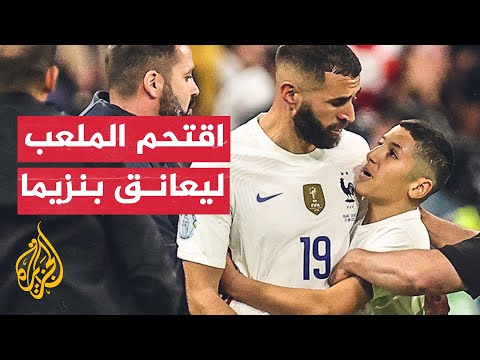 اقتحم فتى صغير الملعب الوطني في فرنسا، عقب نهاية المواجهة بين المنتخب الفرنسي ونظيره الكرواتي في دوري الأمم الأوربية، من أجل عناق النجم الفرنسي كريم بنزيما والحصول على قميصه.