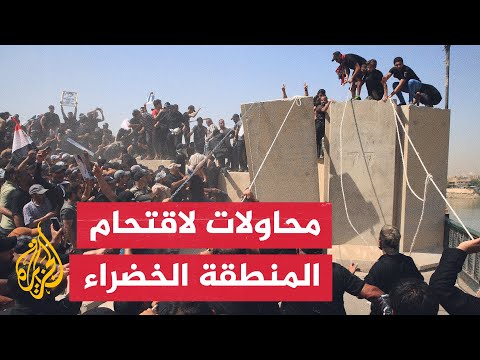 تداول مشاركون في مظاهرات العراق مقاطع مصورة تظهر المئات من أنصار التيار الصدري وهم يتسلقون أسوار المنطقة الخضراء في وسط العاصمة العراقية بغداد تمهيدا لاقتحامها ومحاولة الوصول إلى مبنى البرلمان لمنع إقامة جلسته المقررة اليوم. يأتي ذلك بعد ثلاثة أيام من اقتحام أنصار التيار الصدري لمبنى البرلمان في المنطقة الخضراء المحصنة، فيما تزداد الأزمة السياسية تعقيدًا في البلاد.