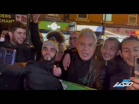 بأعلام فلسطين والجزائر والمغرب.. معتز مطر يحتفل مع اشقائه المغاربة في بريطانيا بالوصول الى المربع الذهبي!!