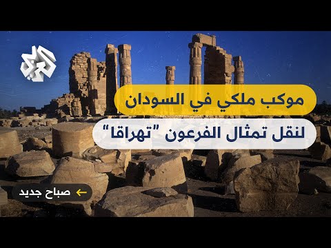 استعدادات لموكب ملكي لنقل تمثال الفرعون الكوشي "تهراقا" داخل المتحف القومي بالسودان.
