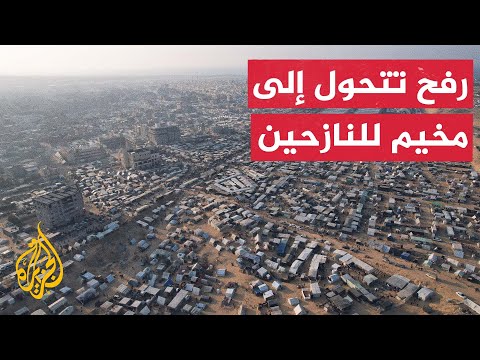 التقطت عدسة مسيرة مشاهد جوية تظهر امتداد خيم النازحين فيما تبقى من مدينة رفح الحدودية مع مصر. ومع تواصل الهجمات الإسرائيلية على غزة، باتت المناطق الصالحة للسكن في القطاع ومنها مدينة رفح محدودة للغاية.