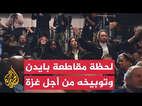 وثقت عدسات الصحافة الأمريكية مشاهد لمحتجين يقاطعون خطابا لبايدن ويهتفون لوقف إطلاق النار في غزة.