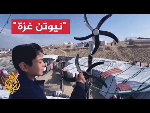 أضاء الفتى الفلسطيني حسام العطار الخيمة التي يقيم فيها مع عائلته بعدما نزحوا نتيجة الحرب الإسرائيلية على غزة، مستخدماً مروحتين وجدهما في سوق للخردة وربطهما ببعض الأسلاك.
