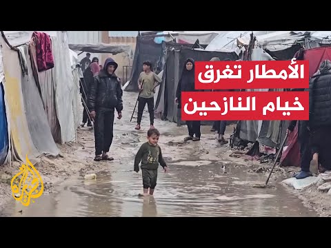 هطلت أمطار غزيرة، على مناطق متفرقة من قطاع غزة، مما تسبب في غرق مئات الخيام في مخيمات النزوح بالمياه. وأمضى النازحون خاصة في مناطق دير البلح ومواصي خان يونس جنوب القطاع، ليلة قاسية داخل خيامهم التي ابتلعتها مياه الأمطار وعصفت بها الرياح.
