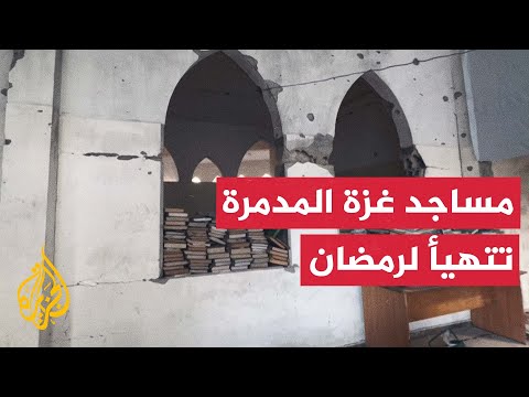 يعمل فلسطينيون على ترميم وإصلاح مساجد غزة المدمر، استعدادا لاستقبال شهر رمضان وأداء صلاة التراويح. في هذا التقرير نسلط الضوء على أعمال ترميم مسجد مدمر في مخيم المغازي، وسط قطاع غزة.