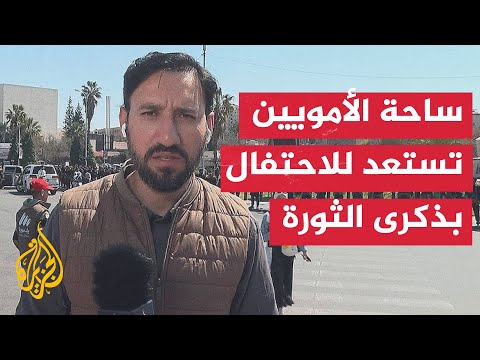 تشهد العاصمة السورية دمشق إجراءات أمنية مشددة، خصوصا في محيط ساحة الأمويين وسط المدينة استعدادا لتجمعات في الساحة للاحتفال بحلول الذكرى الرابعة عشرة للثورة السورية. ويُتوقع خروج مظاهرات في المحافظات السورية احتفالا بذكرى الثورة السورية التي أعلنت انتصارها بإسقاط نظام الرئيس المخلوع بشار الأسد في الثامن من كانون الاول /ديسمبر العام الماضي.