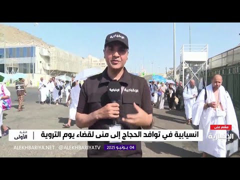 بدأ حجاج بيت الله الحرام بالتوافد صباح اليوم، الأربعاء، الثامن من شهر ذي الحجة 1446 هـ إلى مشعر منى لقضاء يوم التروية، تقربًا لله تعالى، راجين منه القبول والمغفرة، متبعين ومقتدين بسنة نبيهم محمد صلى الله عليه وسلم، مكثرين من التلبية والتسبيح والتكبير، في صورة روحانية وإيمانية.