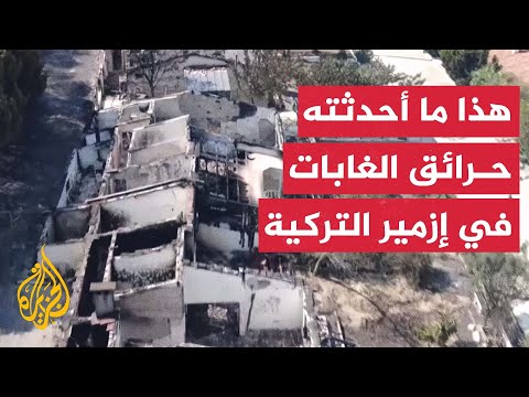 تكشف مشاهد جوية دمارا وأضرار جراء حرائق الغابات التي وصلت إلى أحد أحياء ولاية إزمير التركية، وسط موجة حارة تضرب البلاد.