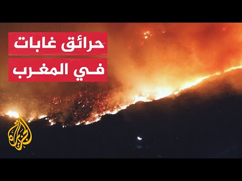 تلتهم النيران مساحات واسعة من الغابات في تطوان، في شمال المغرب، في وقت تعمل فرق الإطفاء على مكافحة للحرائق. كما أظهرت صور، ألسنة لهب هائلة تلتهم منطقة غابات قرب مدينة شفشاون السياحية، شمال المغرب.