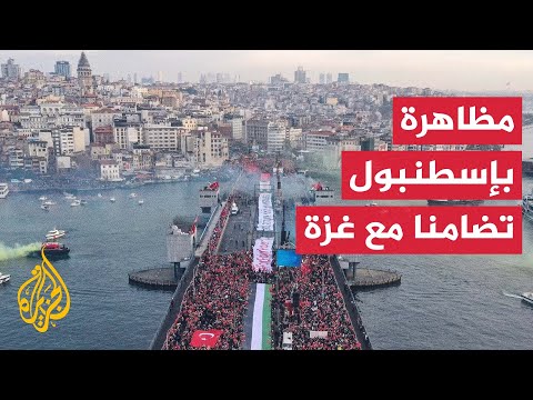 احتشد عشرات الآلاف من الأتراك على جسر غلطة وفي الشوارع المؤدية إليه وسط إسطنبول، للتنديد بما وصفوه استمرار المجازر الإسرائيلية وإعاقة إدخال المساعدات إلى قطاع غزة بالرغم من اتفاق وقف إطلاق النار.
