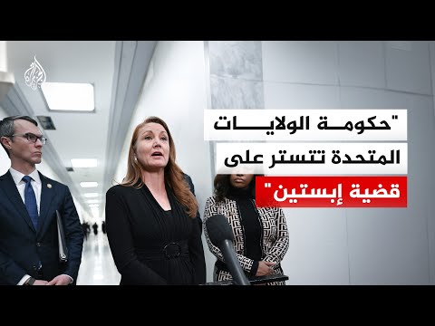 عضوة مجلس النواب الأمريكي ميلاني ستانسبري تقول إن حكومة الولايات المتحدة تتستر على أكبر فضيحة اتجار بالبشر في قضية جيفري إبستين، خلال مؤتمر صحفي بواشنطن.