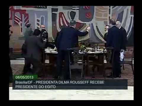 الرئيس مرسي يتخلي عن كأس عصير بعد أن قرعته رئيسة البرازيل بكأسها.