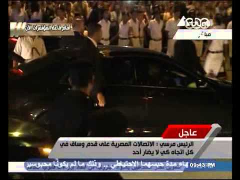 الرئيس مرسي يوقف موكبه ويحيي مؤيديه على قدميه و الاعلامية لميس تميز من الغيض.