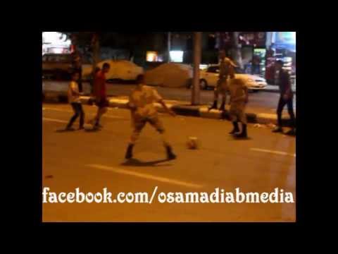 عساكر الجيش يلعبون الكرة امام اعتصام النهضة