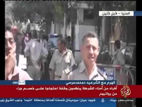 أمناء شرطه بالمنيا ينظمون مسيره احتجاجيه على خصم جزء من رواتبهم والهتاف عايزين مرسي.