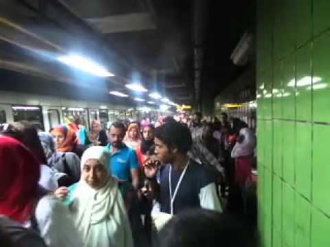 لم يستطيع ركاب القطار الاول من الخروج من محطة مترو الشهداء بسبب التزاحم الشديد حتي جاء القطار الثاني ولم يستطيع الكثيرون ركوب القطار.