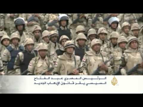 أقر السفاح عبد الفتاح السيسي منذ أيام قانون مكافحة الإرهاب الجديد، وفيه عدة مواد مثيرة للجدل. وخضع القانون لتعديلات حكومية أوائل الشهر الماضي أبرزها يتضمن عقوبة السجن للصحفيين الذين ينشرون أخبارا مخالفة للبيانات الرسمية.