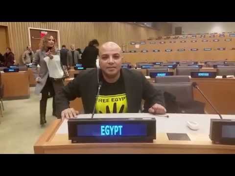 بهجت صابر يتربع على مقعد مصر في الامم المتحده وهو يرتدي تيشورت رابعة