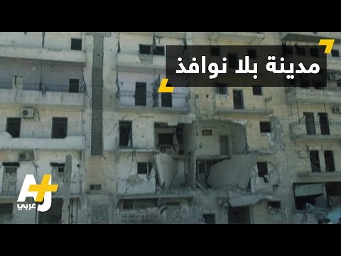 في مدينة حلب، يجتمع الخراب بالدمار، وواجهات ما تبقى من المنازل استبدلت بالبلاستيك لغلاء الزجاج بسبب الحرب.