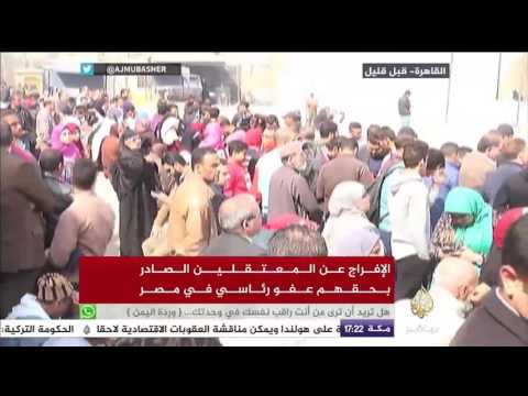 فرحة الأهالي بالإفراج عن معتقليهم المشمولين بالعفو في مصر, ومازال اكثر من 60 الف معتقل يتعرضون للتعذيب في سجون العسكر.