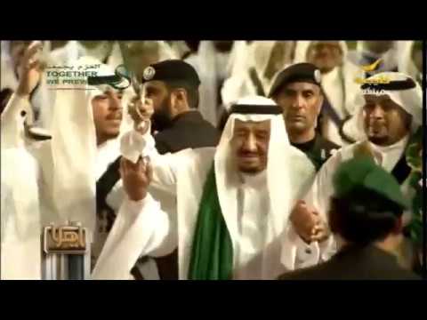 رقص الرئيس الأمريكي دونالد ترامب جنبًا إلى جنب مع العاهل السعودي الملك سلمان بن عبد العزيز، رقصة العرضة التقليدية في السعودية، أثناء مراسم استقباله في قصر اليمامة في العاصمة الرياض.