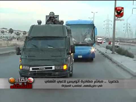 قناة النادى الأهلى تعرض طريق النادى الأهلى المصرى داخل مشروع أليكس ويست بالأسكندرية تحت حراسة مشددة للذهاب الى ستاد برج العرب لمقابلة نادى الترجى.