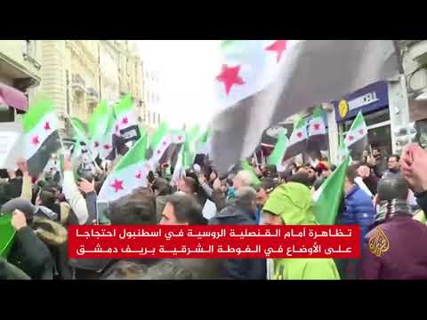 نظم السوريين وأتراك مظاهرة أمام القنصلية الروسية في إسطنبول احتجاجا على المجازر التي يرتكبها الطيران الروسي والسوري ضد سكان الغوطة، والتي أسفرت عن مقتل المئات وجرح الآلاف وخلفت دمارا واسعا.