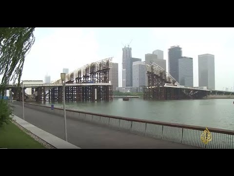 على مساحة أربعة كيلومترات مربعة تمتد مدينة "يوجيابو" التي أُنشئت لتكون منطقة للتجارة الحرة، بدأ إنشاؤها منذ 2009 لتكون النسخة الصينية لحي مانهاتن الأميركي، إلا أنها لا تزال خاوية على عروشها رغم افتتاحها رسميا منذ أربع سنوات.