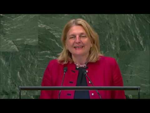 استهلت وزيرة خارجية النمسا، كارين كنايسل، كلمتها في الجمعية العامة للأمم المتحدة، باللغة العربية، التي أشارت إلى أنها تعلمتها في مقر الأمم المتحدة في فيينا، وفي بيروت أثناء فترة الحرب.