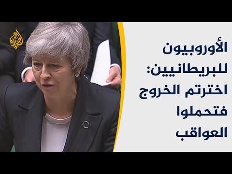تحدث البرلمانيون الأوروبيون بلهجة صارمة مع بريطانيا، ومنحوها فرصة أسابيع محدودة فقط لتأجيل الانسحاب من الاتحاد الأوروبي، رافضين تحميل رئيسة الحكومة البريطانية لهم مسؤولية أي فوضى في انسحاب بلادها من الاتحاد.