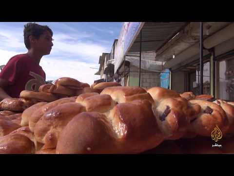 الأجواء الرمضانية في أحد أسواق مخيمات اللاجئين بريف اللاذقية شمال غرب سوريا.
