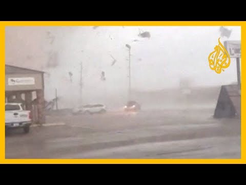 مشهد مخيف لإعصار يضرب شمال شرق ولاية أركنساس في الولايات المتحدة ويخلف أضرارا كبيرة في الممتلكات