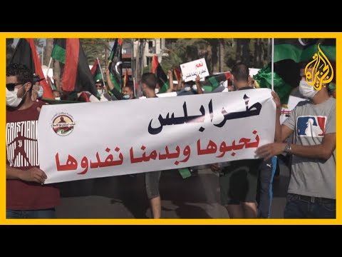 العشرات يحتجون في ميدان الشهداء بوسط طرابلس، احتجاجا على تردي الأوضاع المعيشية والانقطاع المستمر للتيار الكهربائي.